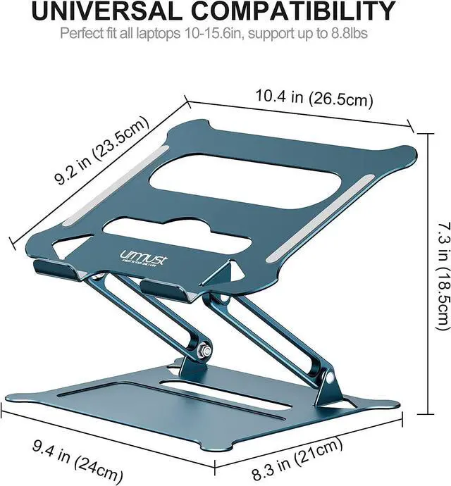 Protective Stable and Foldable: Urmust Adjustable Laptop Stand is sturdy to support up to 8.8 lbs(4kg); the rubber on the holder's hands sticks tightly, ensure your laptop stable on the stand and prevent any scratches.Foldable to save space for easy storage and designed handle hole for easy carrying.