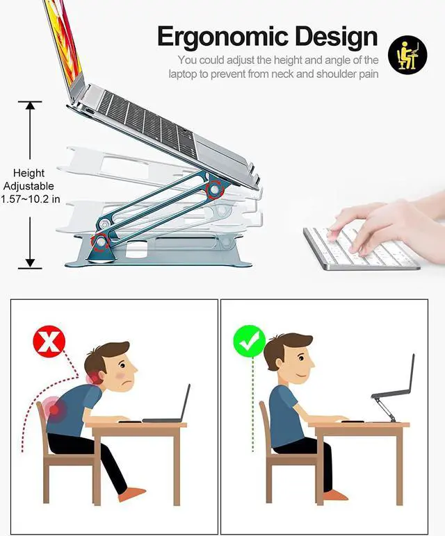 Ergonomic Adjustable Design: Ergonomists emphasize that it is healthy to find the most comfortable angle of effective labor time. Our Urmust Ergonomic Notebook Stand can continuously different angle adjustment from 0 ° to 90 ° to prevent your sedentary cervical spine, spinal injuries.