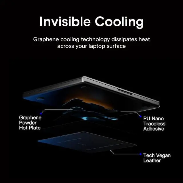 [Adds no weight or bulk] With the thinnest thermally conductive material integrated into invisible design, it's only 10% as thick and heavy as the current cooling pad offerings on the market making it portable for mobile workstation set ups anywhere