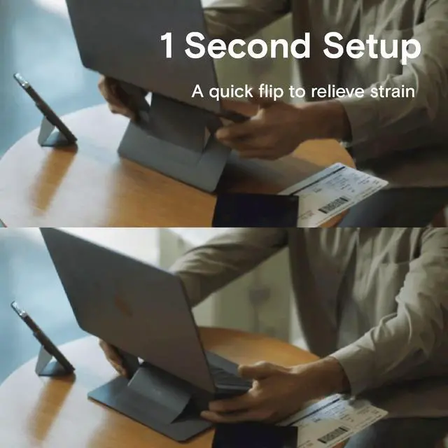 [Dual-angle adjustment] With a classic origami-inspired structure, it props up your laptop in a flash. The 25° highly-lifting mode raises your screen, relieving neck pain, while the 15° low-lifting mode makes typing much easier