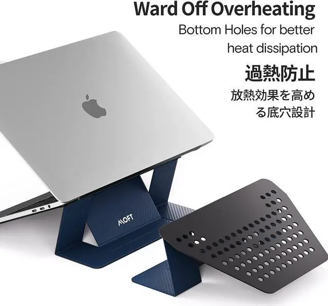 MOFT Invisible Laptop Stand for Laptops Without Bottom Vents, Lightweight Adhesive 2-Height Repositionable Residue-Free Laptop Desk Stand(CarbonPU-Blue)