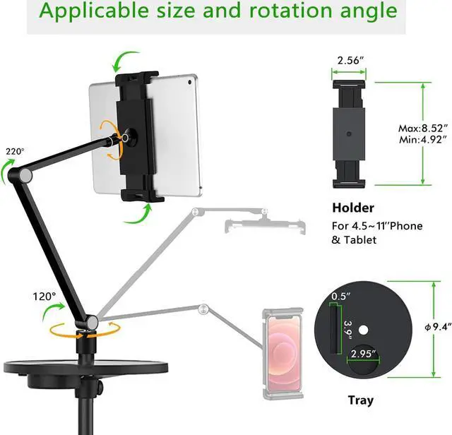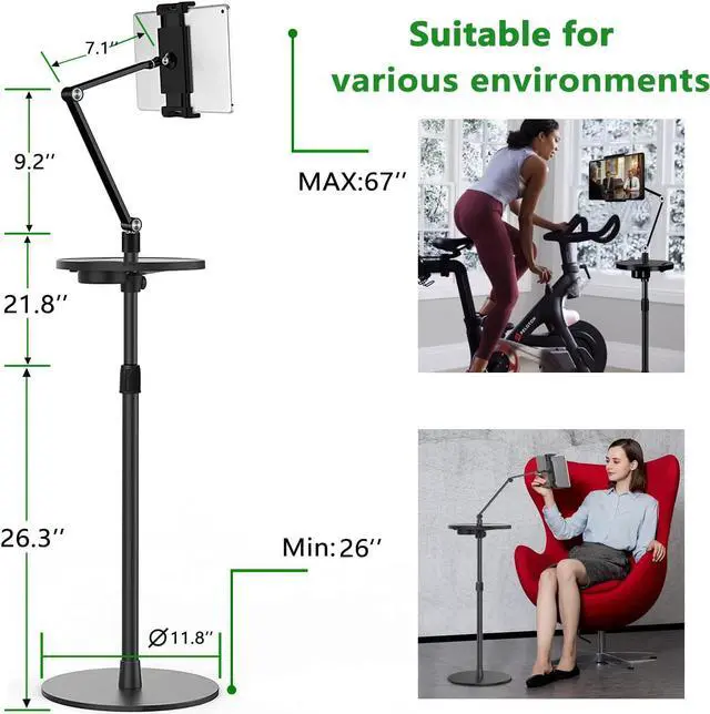 EXCELLENT COMPATIBILITY: Tablet floor stand is compatible with 4.7"-11" screen cellphones and tablets, Nintendo Switch, iPad Pro 9.7/10.2/10.9, iPad series, iPad Air series, iPad Mini series , Microsoft Surface Pro series, Samsung Galaxy Tab series and other 4.7''~11'' cellphones and tablets.