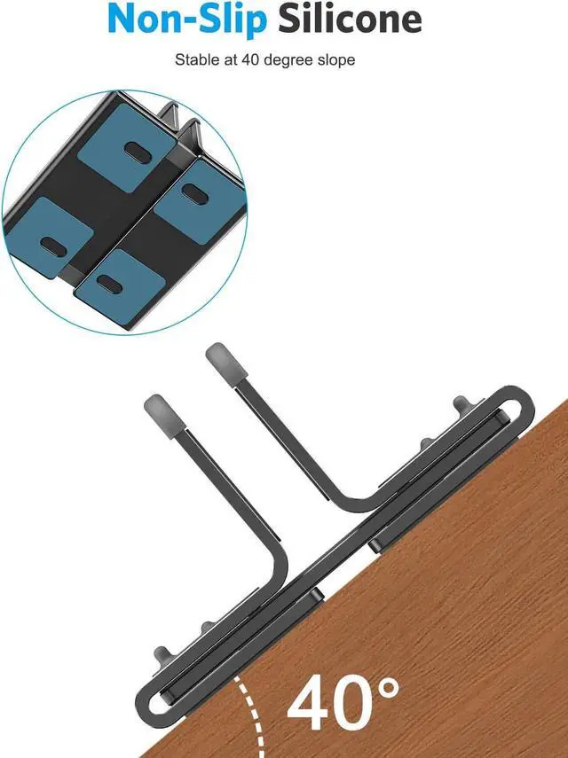 PROTECTIVE PADS: The area that stays in contact with the laptop is lined with silicone strips to prevent scratches. At the same time, the stand's bottom has non-slip padding to prevent skidding