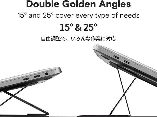 [Adjustable Golden Angles] It comes with two most needed angles, 25° and 15°. The high-lifting mode raise a laptop 3in, making users sit in a right posture. The low-lifting make the screen 2in higher to adopt to the standing situation