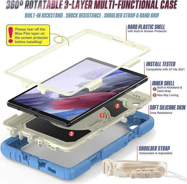 ?Built-in Screen Protector Trusty three-layer protection ensures that your Galaxy Tab A7 Lite tablet 2021 can take a tumble or a knock and keep right on going. It provides all-around protection against drops and scratches with a built-in anti-skidding screen protector and port covers.