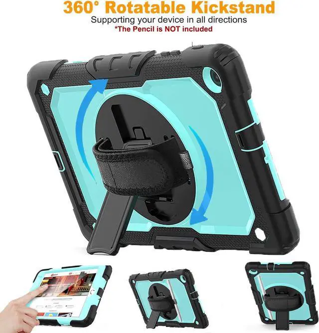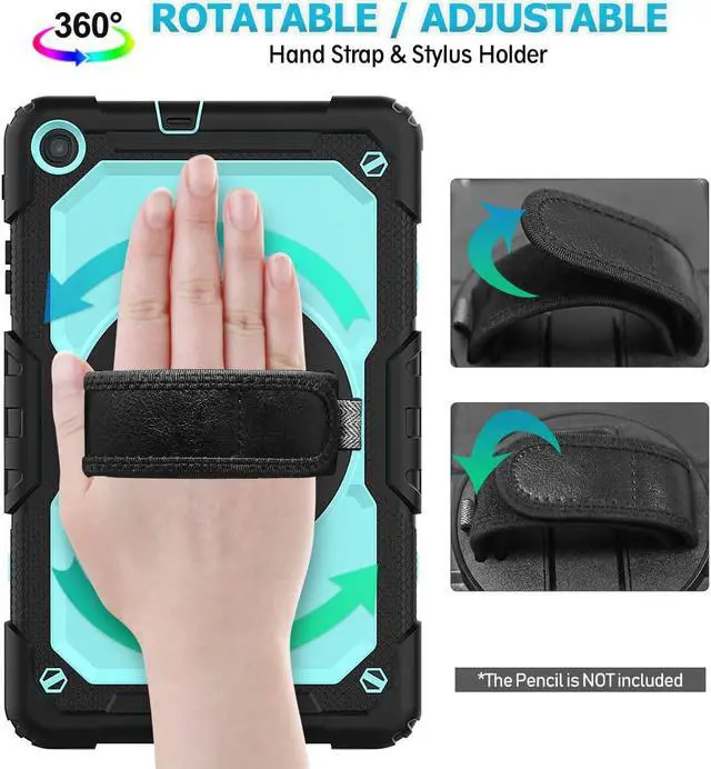 Built-in 360 Rotatable Kickstand & Hand Strap360-degree rotating swivel stand supports position of 3 angles(Vertical, Horizontal, and Halfway between), ideal for watching videos, conferences and travelling. Soft rotating handle strap prevents falling of samsung 10.1 tablet, featuring convenient use for teachers, students, waiters, doctors, nurses and conference presenters.