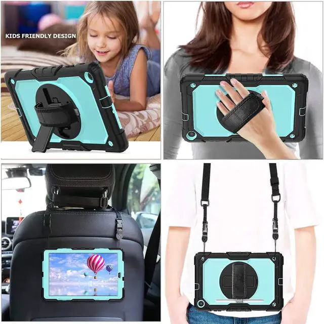 Adjustable Shoulder StrapAdjustable shoulder grip can be slanted and release your hands completely. This function is perfect for traveling, restaurant ordering, home product introduction, engineer outdoor operation, teacher, etc. Also, the strap allows you to hang up your tablet behind car seat for entertainment for kids.