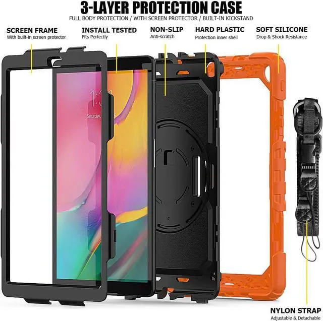 Full Body ProtectionThe samsung tablets 10.1 inch case 2019 is made from high-grade thermoplastic polycarbonate and anti-skidding silicone and is designed with a built-in screen screen protector, creating the full-body protection for your tablet. The high-quality, non-toxic silicone sleeve is not only shockproof and durable, but also comfortable to touch.