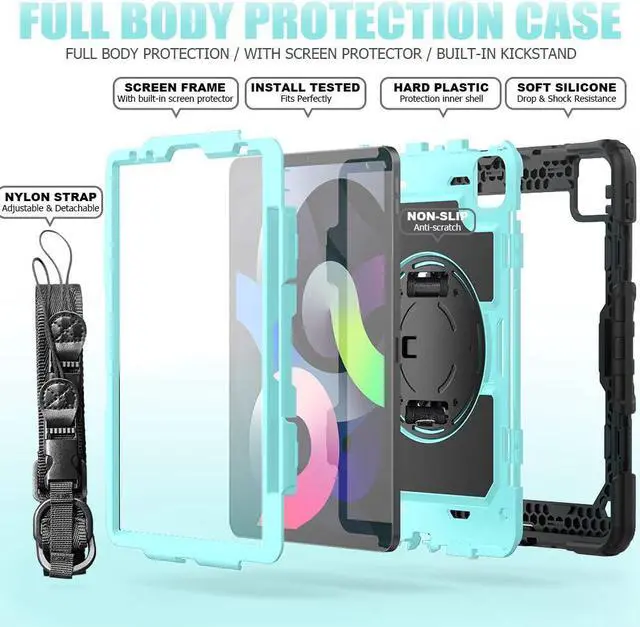?Full Body ProtectionThe ipad air 5 case is made from high-grade thermoplastic polycarbonate and anti-skidding silicone and is designed with a built-in screen screen protector, creating the full-body protection for your ipad air 5th/4th tablet. The high-quality, non-toxic silicone sleeve is not only shockproof and durable, but also comfortable to touch.