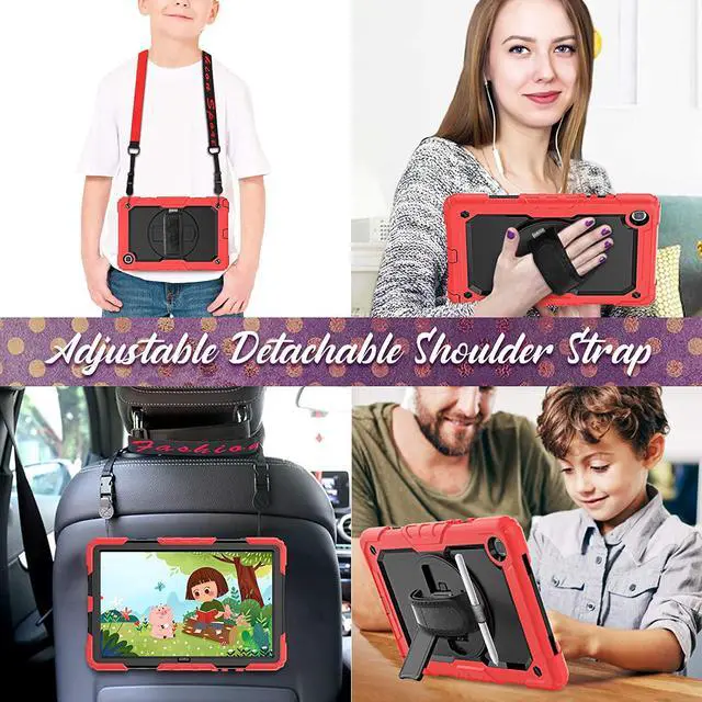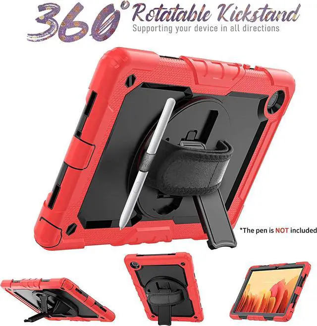 Galaxy Tab A7 Case, 10.4 Inch Heavy Duty Tab A7 Case with Pen Holder/Rotating Kickstand/Handle/Shoulder Strap/Screen Protector for Samsung Galaxy Tab A7, Tab A7 10.4" (Red)
