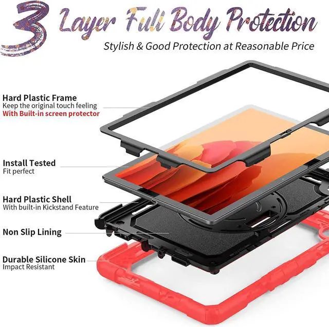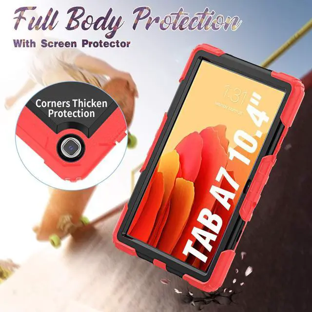 • Full Body Protective Design Our HXCASEAC Galaxy Tab A7 case is made from premium PC and Silicone and has a solid 3-layer structure. With built-in screen protector, the study Tab A7 10.4 case protects your Galaxy Tab A7 from drops, impacts, shocks and scratches. (A spare front shell WITHOUT screen protector is provided for you to use your own screen protector)