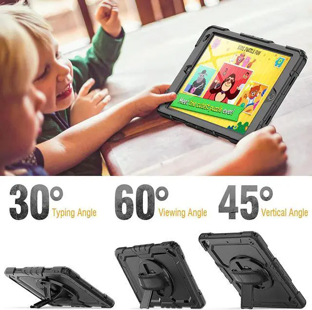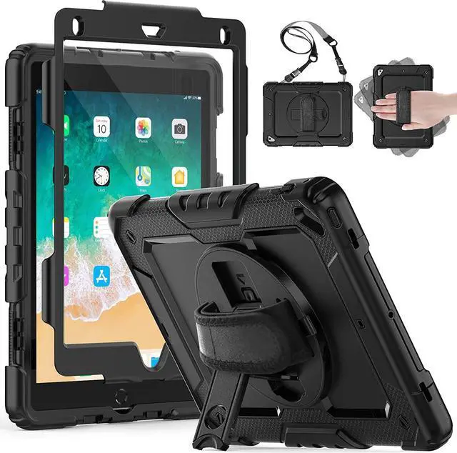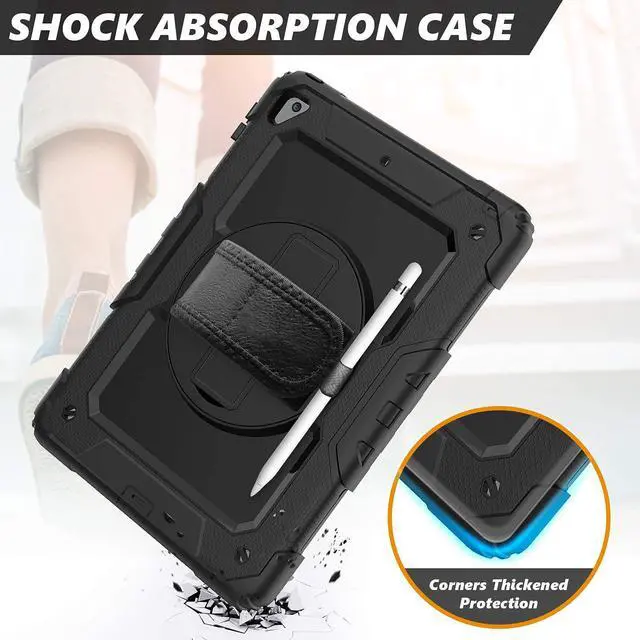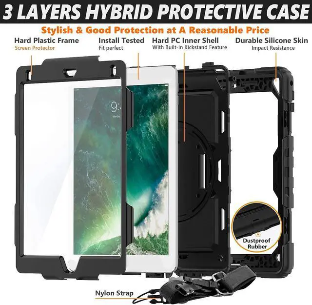 Full Body Protection + Screen Protector This iPad Air 2 / iPad 6th / 5th Gen Case is designed with durable anti shock material, soft silicone, hard plastic shell and built-in screen protector. The sturdy 9.7 inch case can keep your iPad safe from shock, drop, scratch or accidental damages in daily use, also kids friendly design.