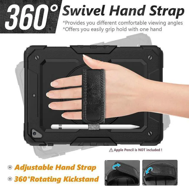Rotating Hand Strap & StandThis iPad 9.7 case provides a stable supports, with viewing/drawing/typing angles. You can hold the iPad safely by one hand and find the most comfortable viewing angle you need. PS, the stand can be folded up when not in use.