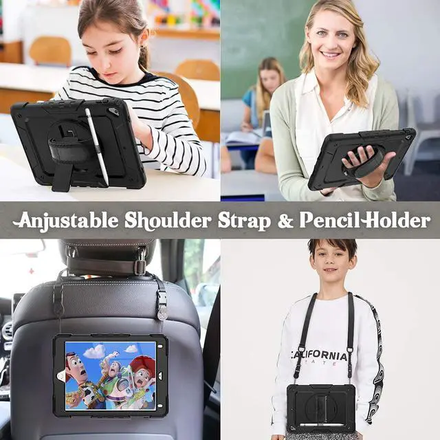 Multifunctional Carrying StrapDetachable and adjustable shoulder, both kids and adults can carry the iPad case during hiking, traveling or other activities outside, or hang it on the back of seat for fun when traveling in cars.