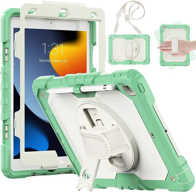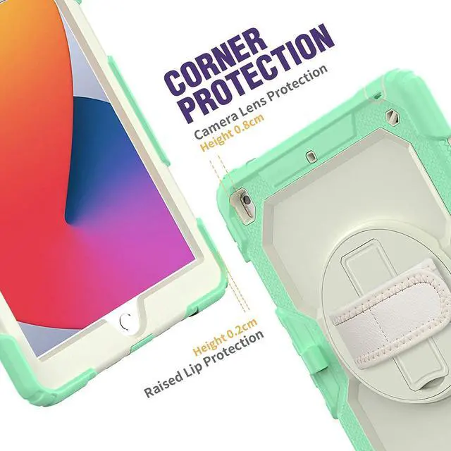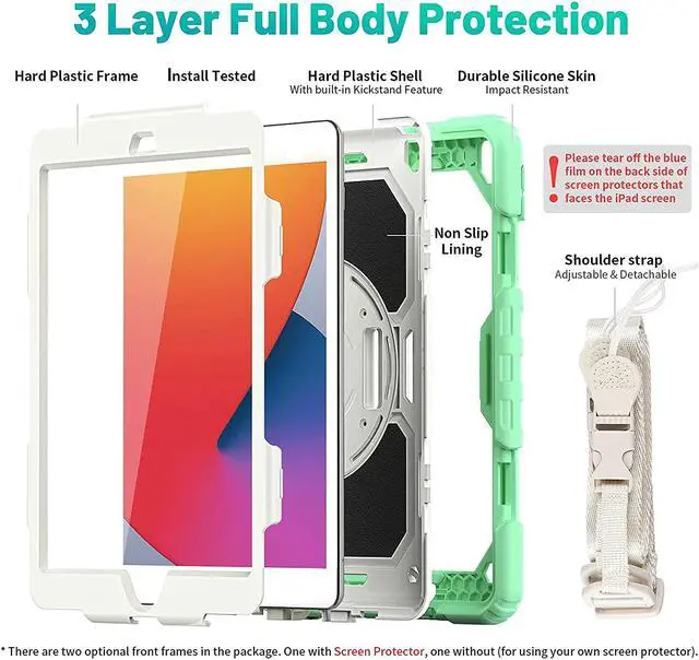 Shockproof+Screen ProtectorThis iPad 10.2 Case is designed with durable anti shock material, soft silicone, hard plastic shell and built-in screen protector. The sturdy iPad 9 / 8 / 7 Gen case can keep your iPad safe from shock, drop, scratch or accidental damages in daily use.
