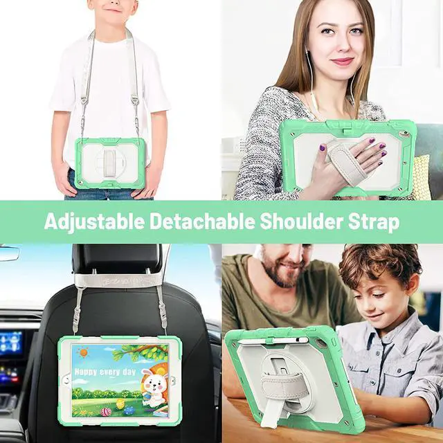 Multifunctional Carrying StrapDetachable and adjustable shoulder, both kids and adults can carry the iPad case during hiking, traveling or other activities outside, or hang it on the back of seat for fun when traveling in cars.