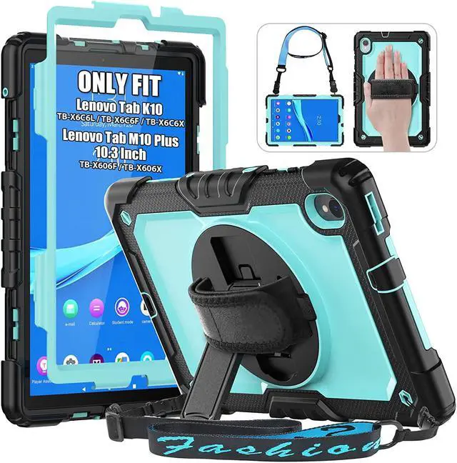 Rotating Stand & Hand StrapThis shockproof Lenovo M10 Plus 10.3 / K10 tablet case supports in different viewing angles/drawing angles/typing angles, you can hold safely by one hand, ideal for meeting, working. Also, the stand can be folded up when not in use.