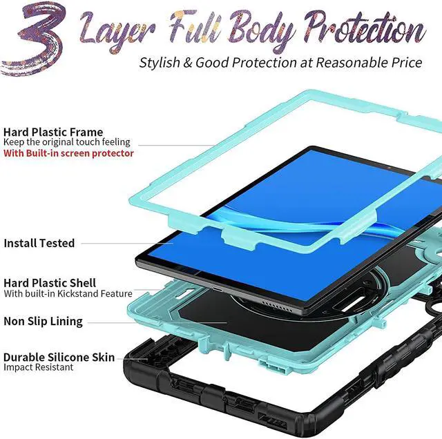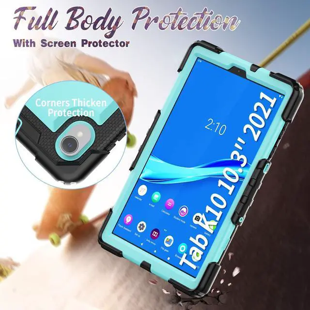 Shockproof + Screen ProtectorThis Lenovo tablet case 10.3 inch is designed with durable anti shock material, with soft silicone edge, hard plastic shell and built-in screen protector. The sturdy case can keep your tablet safe from shock, drop, scratch or accidental damages.
