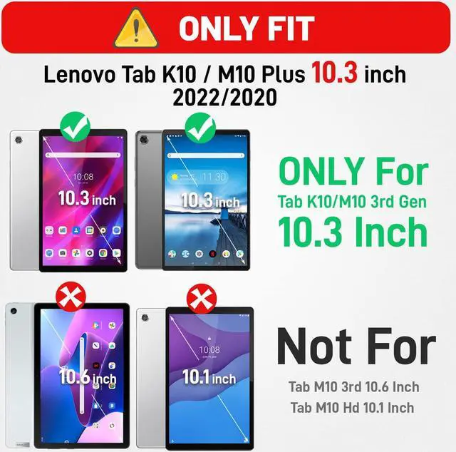 ONLY Compatible 10.3 inchFor Lenovo Tab M10 Plus 10.3 inch case 2020 / Smart FHD & Lenovo Tab K10 case ( TB-X606F / TB-X606X / TB-X6C6L / TB-X6C6F / TB-X6C6X ). Please check the model first - Settings - About Tablets - Tablet Model. The stylus is NOT includes!