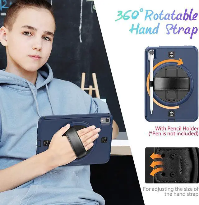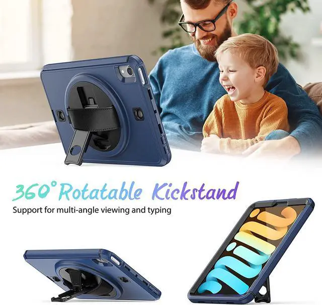 | 360 Degrees Rotating Stand | - Located on the back of iPad mini 6th generation 8.3 inch 2021 shockproof case, built-in 360 degrees rotating kickstand provides multiple angles for viewing, typing, or drawing. Ideal for students, teachers, engineers, cashiers, waiters...
