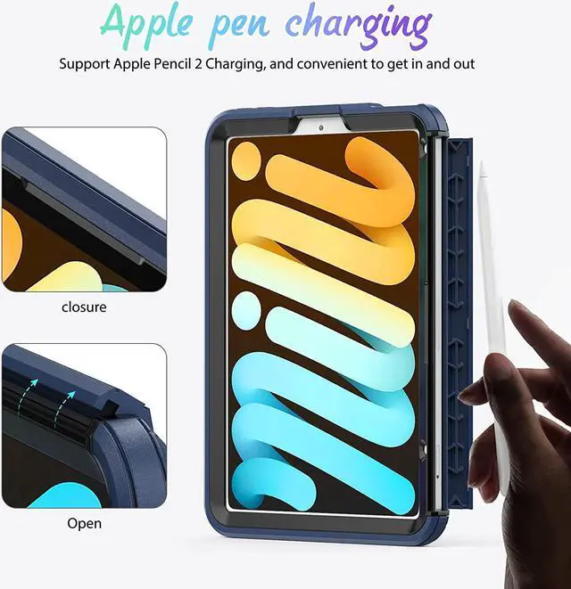 | Shockproof Case with Screen Protector | - This iPad case is composed of hard PC frame, soft TPU silicone and non-slip lining as well as built-in screen protector, providing your iPad mini 6 in full-body protection against accidental drops, scratch, impacts and shock.