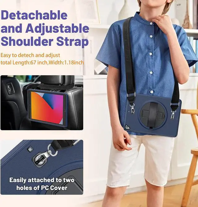 ? High Quality Removable & Adjustable Shoulder Strap: The adjustable-length shoulder strap(67 inches,170 cm) can be conveniently and quickly attached or detached from two holes on the PC cover. You can carry iPad 10.2 9th generation case like a messenger bag.Plus,you can hang it behind the car seat or any other place you want,leaving your hands free during working, studying, hiking, traveling, or other outdoor/indoor activities.
