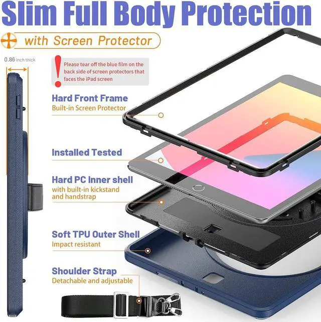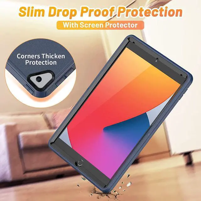 ? Slim Full Body Protection with Screen Protector: iPad 10.2 inch 9th generation case with the thickness of 0.86 inches is not bulky. It is composed of 1-layer soft TPU and 2-layers PC covers with a built-in screen protector, providing your tablet in full body protection against accidental drops, scratches, shocks, or bumps.There is also a stylus holder designed facilitate you to carry your Apple Pencil with your tablet(Apple Pencil is NOT included).