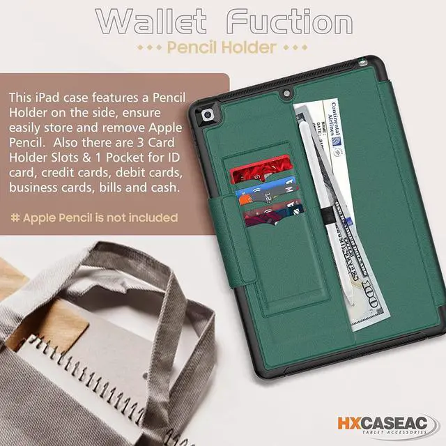 ?| PENCIL HOLDER & CARD SLOTS | - iPad 9th / 8th / 7th Generation case designed to carry your Apple Pencil safely and securely. This iPad case features a Pencil Holder on the side, ensure easily store and remove Apple Pencil. *Apple Pencil is not included. Also there are 3 Card Holder Slots & 1 Pocket give enough space for ID card, credit cards, debit cards, business cards, bills and cash.