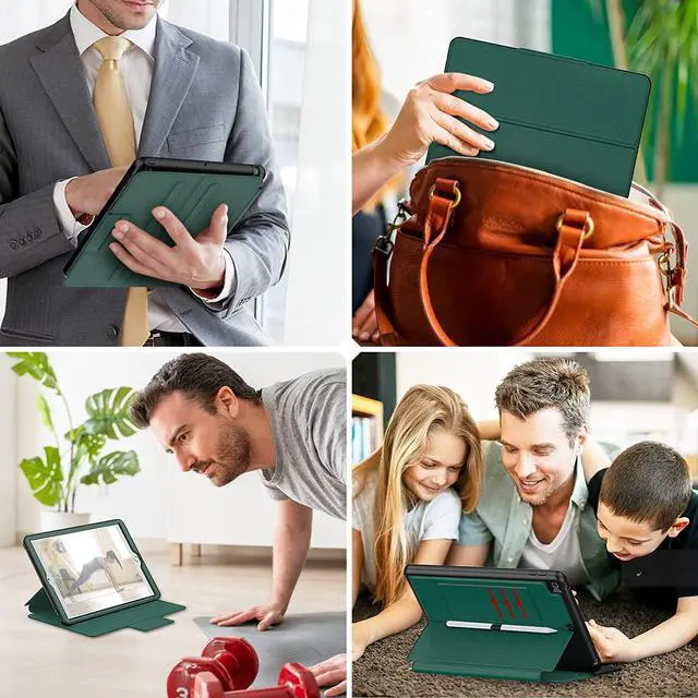 ?| WAKE/SLEEP & MULTI-ANGLE VIEWING STAND | - Automatically wakes or puts your iPad 10.2 to sleep when the lid is opened and closed, which protects and extends battery life. With multiple viewing angles stand, you'll always find a comfortable viewing position. Whether you're working, cooking, playing games with the kids, or on the go. The iPad always has a stable support angle with anti-slip stripe. Don't worry about slipping or collapsing.