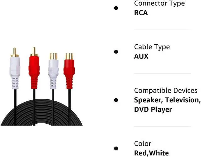 Gold Plated 2 RCA Male to Female Stereo Audio Extension Cable, High Quality Audio Cable
