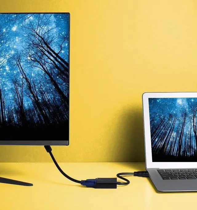 Portable HDMI to VGA adapter connects a computer, desktop, laptop, or other devices with HDMI port to a monitor, projector, HDTV, or other devices with VGA port,or extend your desktop screen to a monitor or TV & projector