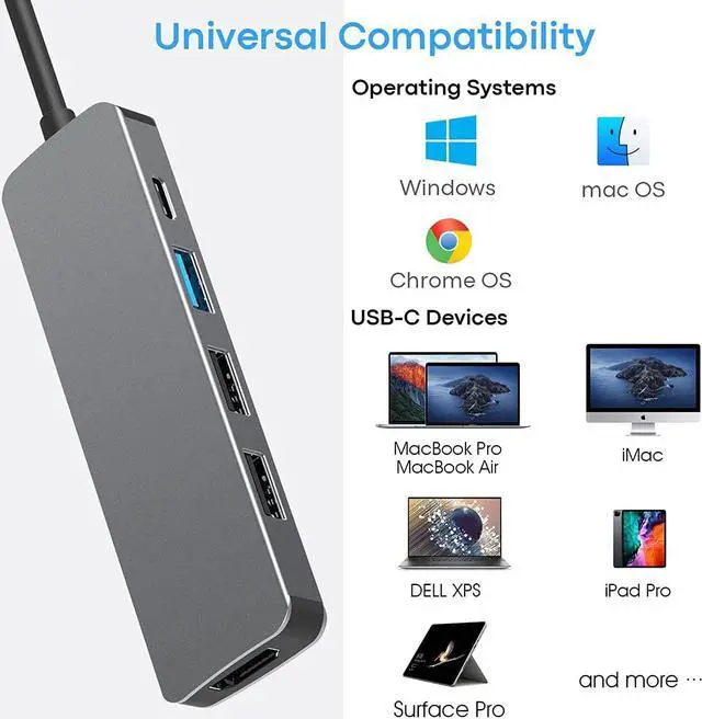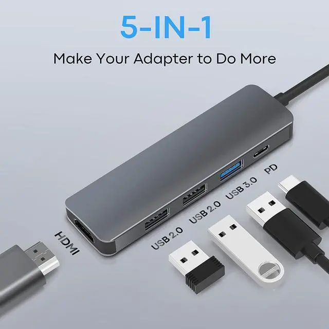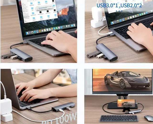 USB C Hub,Extends devices USB-C port:4K@30Hz HDMI output port, 1 100W PD Charging port, 2*USB2.0-A ports & USB3.0-A ports,With it keep a sleek workspace.
