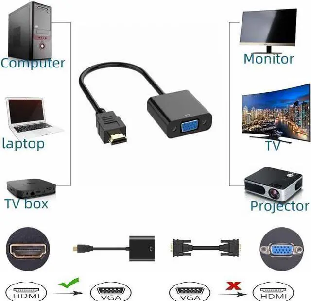 Portable HDMI to VGA adapter connects a computer, desktop, laptop, or other devices with HDMI port to a monitor, projector, HDTV, or other devices with VGA port,or extend your desktop screen to a monitor or TV & projector