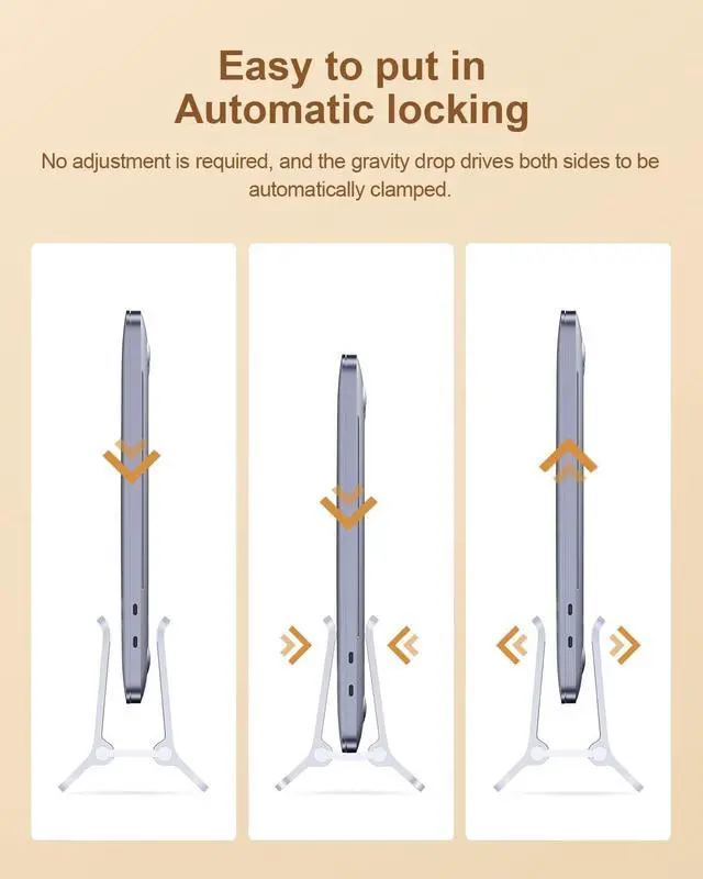 Gravity Locking: Hagibis Vertical Laptop Stand is no adjustment required, the gravity drop makes the two sides to be automatically gripped. Easy to place, automatic to gripping