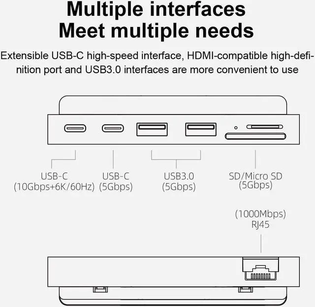 Multiple Interfaces: Hagibis USB-C dock with 4K@60Hz HDMI port, 10Gbps & 6K@60Hz USB C 3.1 Gen2 port, 5Gbps USB C port, 2 USB3.0 ports and 5Gbps SD/Micro SD Card Reader. *Note: SD/Micro SD Card can be read at the same time