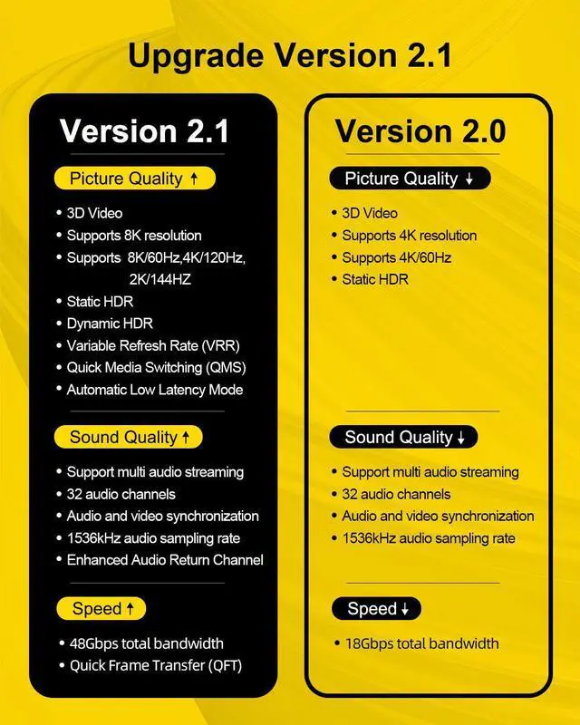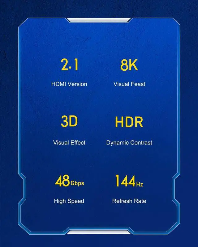 Ultra HD 144Hz HDMI 2.1 Cable 8K60, 4K120 & up to 10K resolution, Dynamic HDR, eARC, ALLM, QFT, QMS, VRR, and compatible with 8K 50Hz, 4K 120Hz UHD, 4K 100Hz and more, providing Ultra HD cinematic experience and 3D visual effects. NOTICE: please make sure your devices support 8K.