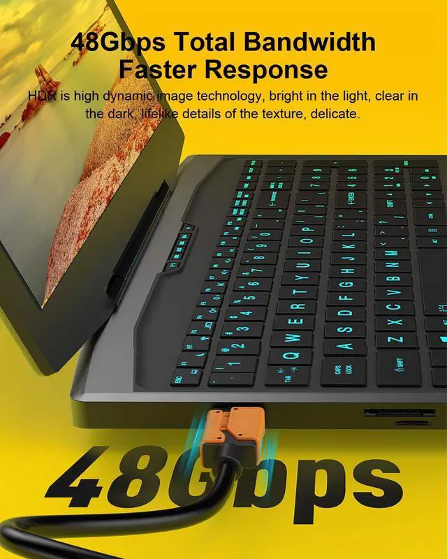 48Gbps Super High Speed This HAGiBiS ultra high speed HDMI Cable provides a high-speed 48Gbps solution for better picture and sound. Features 2 gold-plated connectors with anti-oxidation performance and excellent conductivity for super-fast transfer and superior connection. HDMI 2.1 port brings 48Gbps transmission quantity, and super clarity for view without any lagging so you never miss a beat. Besides, the cable also features very low EMI emissions.