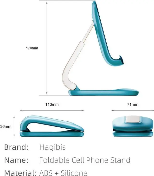 Light & Foldable: Hagibis foldable cell phone stand weighs only 6.45Oz, and it can be folded without taking up space, you can carry it in your bag, easy to carry