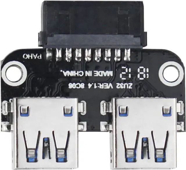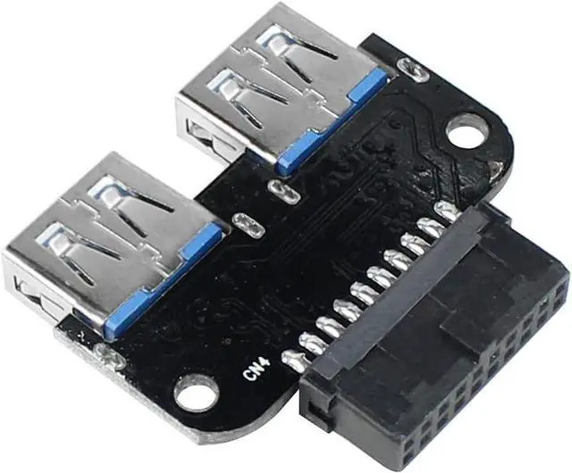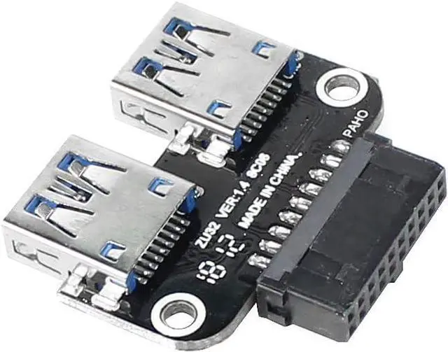 20Pin to Dual USB3.0 Adapter Connverter Desktop Motherboard 19 Pin/20P Header to 2 Ports USB 3.0 A Female Connector Card Reader (Horizontal Version)
