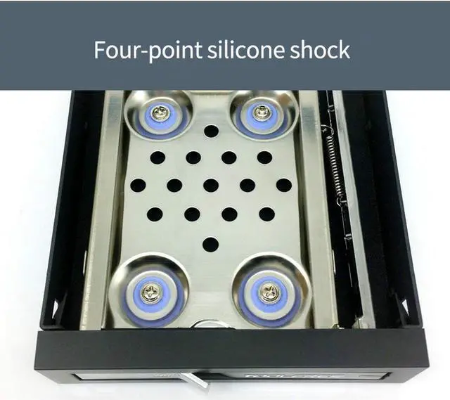 Shockproof Single Bay adopts a 4-point silicone suspension shockproof design, which can better reduce the damage to the hard disk caused by external vibration.