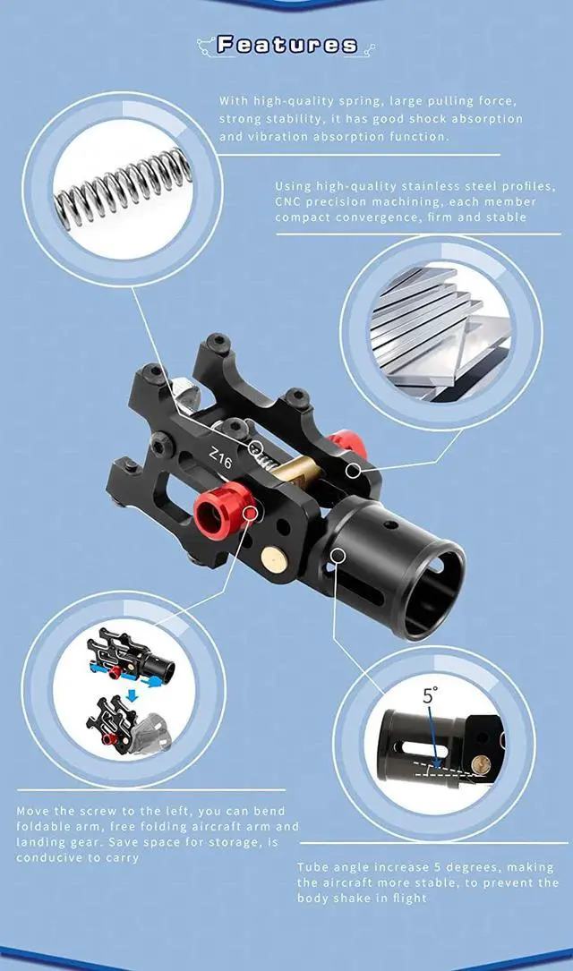 The folding tube seat is made of aviation aluminum alloy precision machining, there is no virtual position to ensure flight stability.