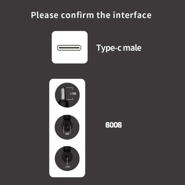 Connector (s) B: DC6.0*3.7MM/DC5.5*2.5MM/DC4.0*1.35MM/DC2.5*0.7MM 4 kinds of Male Plug optional