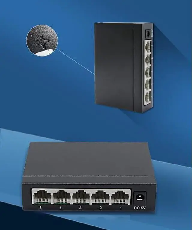 5-Port Ethernet Switch: Each port is directly connected to the host computer, and 5 ports can be connected at the same time for conflict-free data transmission.