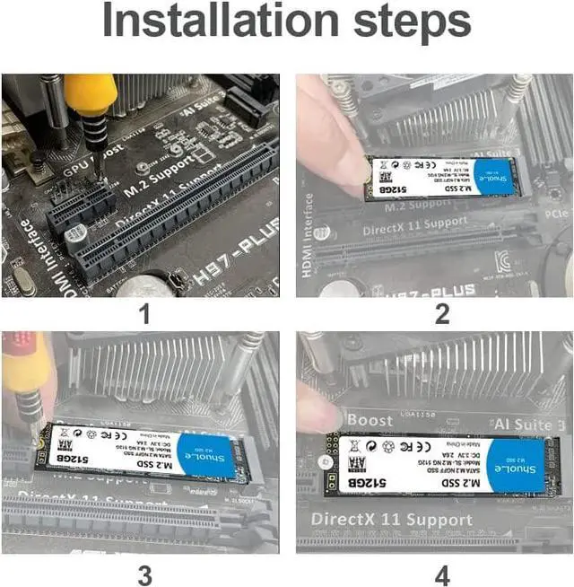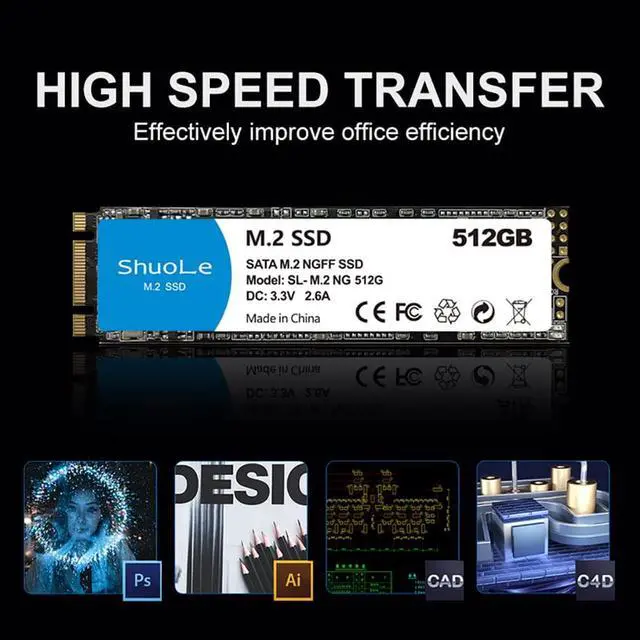 M.2 NGFF Internal SSD Interface type: NGFF interface, Hard drive size M.2, SSD Size 80*22*3.8mm, DC 3.3V 2.6A.