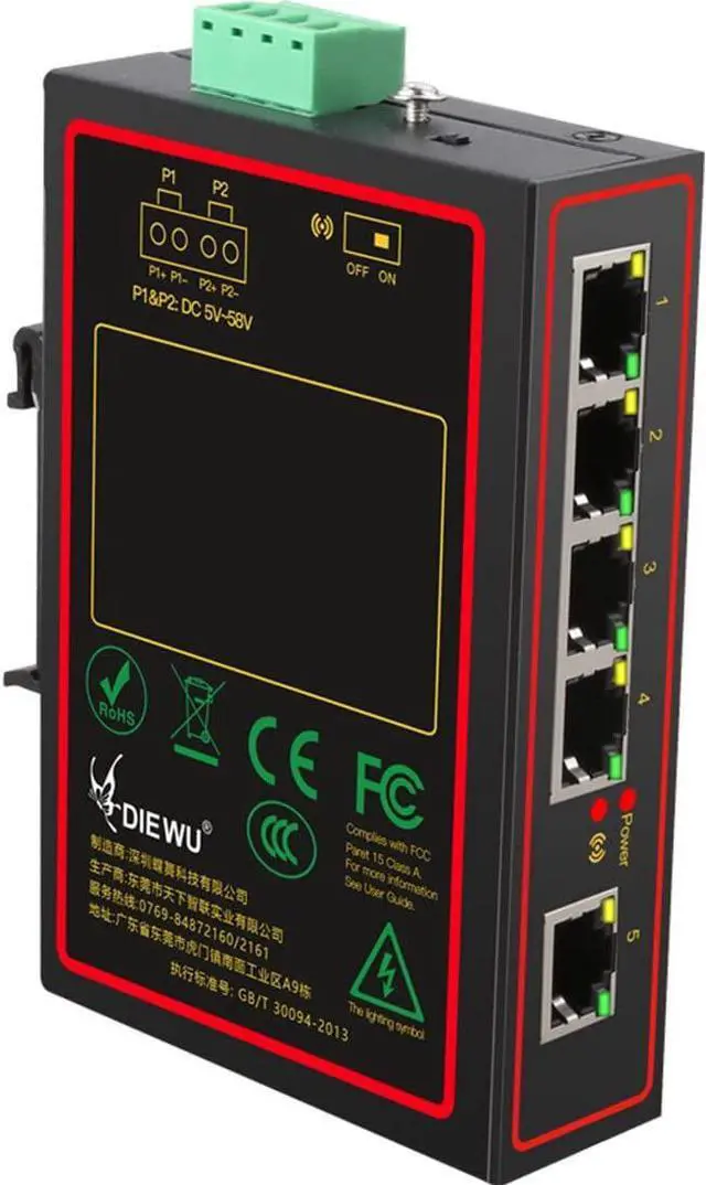 Port number: 5 port 10/100M Auto MDI-MDIX RJ45; Network media: 10Base-T,cat3 or above UTP,100Base-Tx,cat5 UTP; Forwarding rate: 10 Mbps / 14,880 pps ,100 Mbps / 148,800 pps.