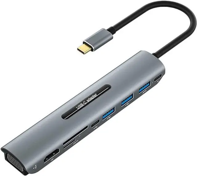 ? 9 IN 1 USB HUB: VGA * 1 + compatible with HDMI * 1 + SD/TF * 1 + 1 + USB3.0 * 3 + PD * 2