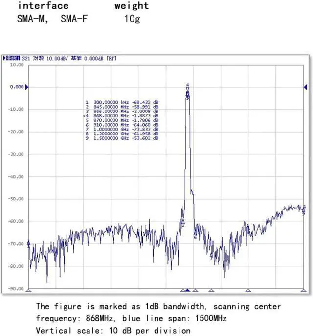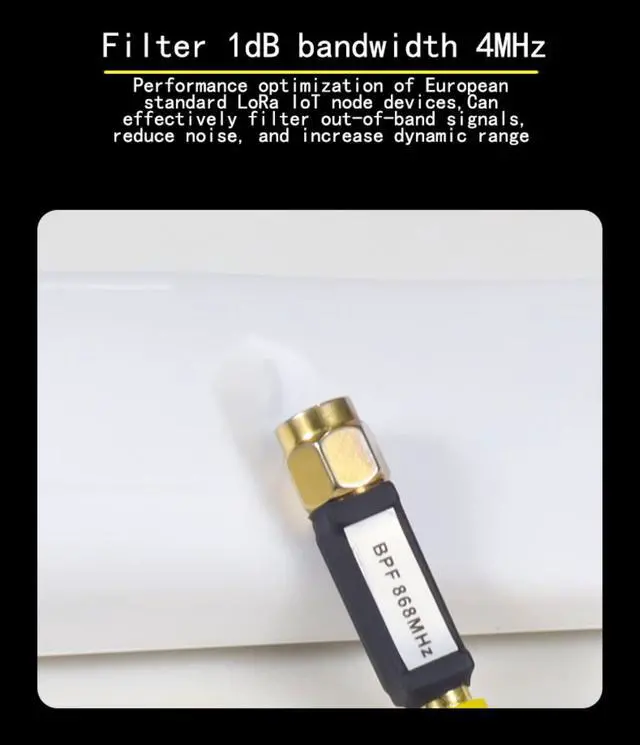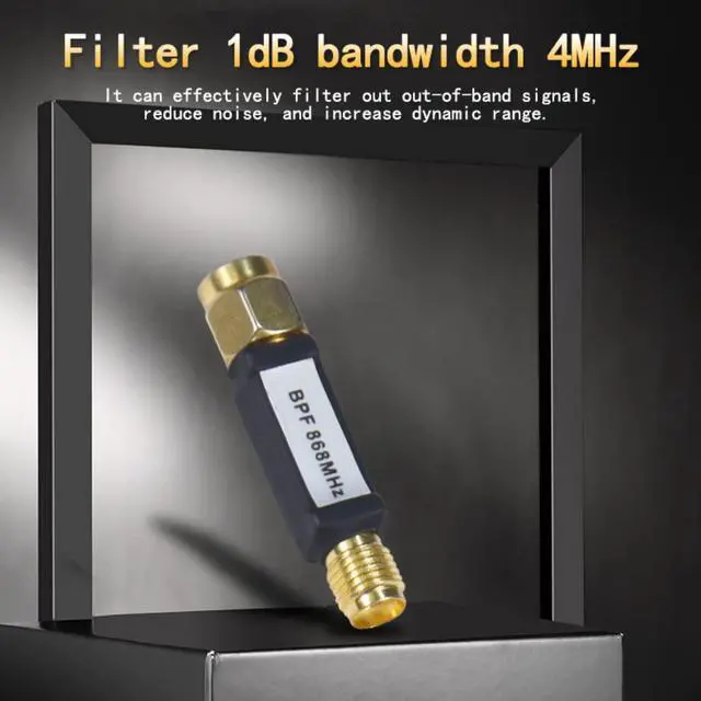 * Perfect Function * -- This SMA interface band-Pass filter has a 1dB bandwidth of 4MHz and a steep cutoff characteristic.Optimized for 868MHz remote control and RFID receiver,it can effectively filter out-of-band signals, reduce noise and increase dynamic range.Bandpass filters in receivers help pass signals within a selected frequency range and block unwanted frequencies.