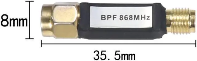 * Premium Design * -- This 868MHz Band Pass Filter has the characteristics of small size, light weight, low insertion loss, high resistance band rejection and high image attenuation, high power tolerance and low cost.