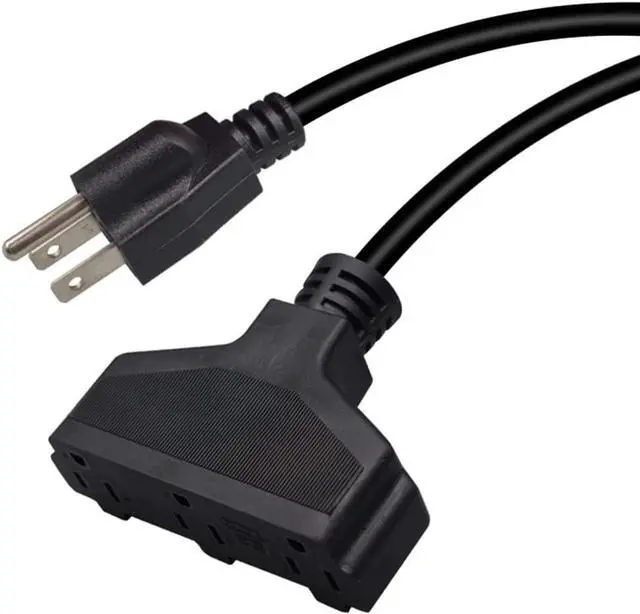 Heavy Duty Nema 15 Amp to 20 Amp Household AC Power Extension Cord UL/ETL Listed Nema 5-15P/5-20P to 5-15R/5-20R AC Plug Adapter 18AWG 125V 15A (1FT 5-15P to 3 * 5-15R UL Triangle)
