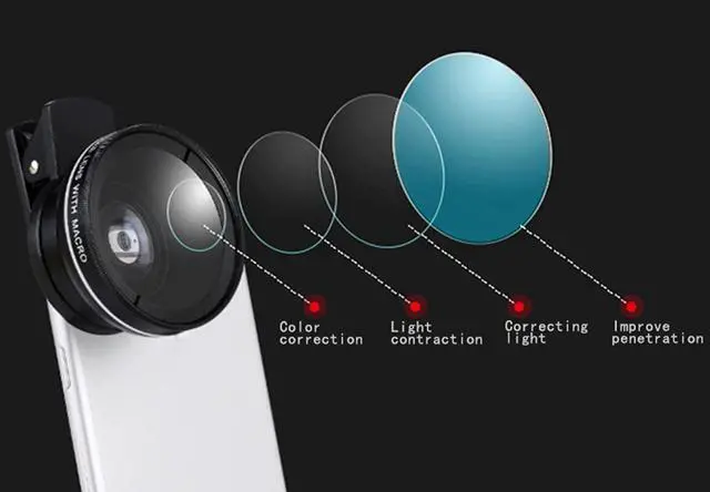 * Premium Design * -- The cell phone lens filter adopts high-quality optical glass + multi-layer optical coating, which effectively solves the defects of clear middle and blurry edges when taking pictures with external mobile phone lenses.Comes with PU storage bag,easy to carry.